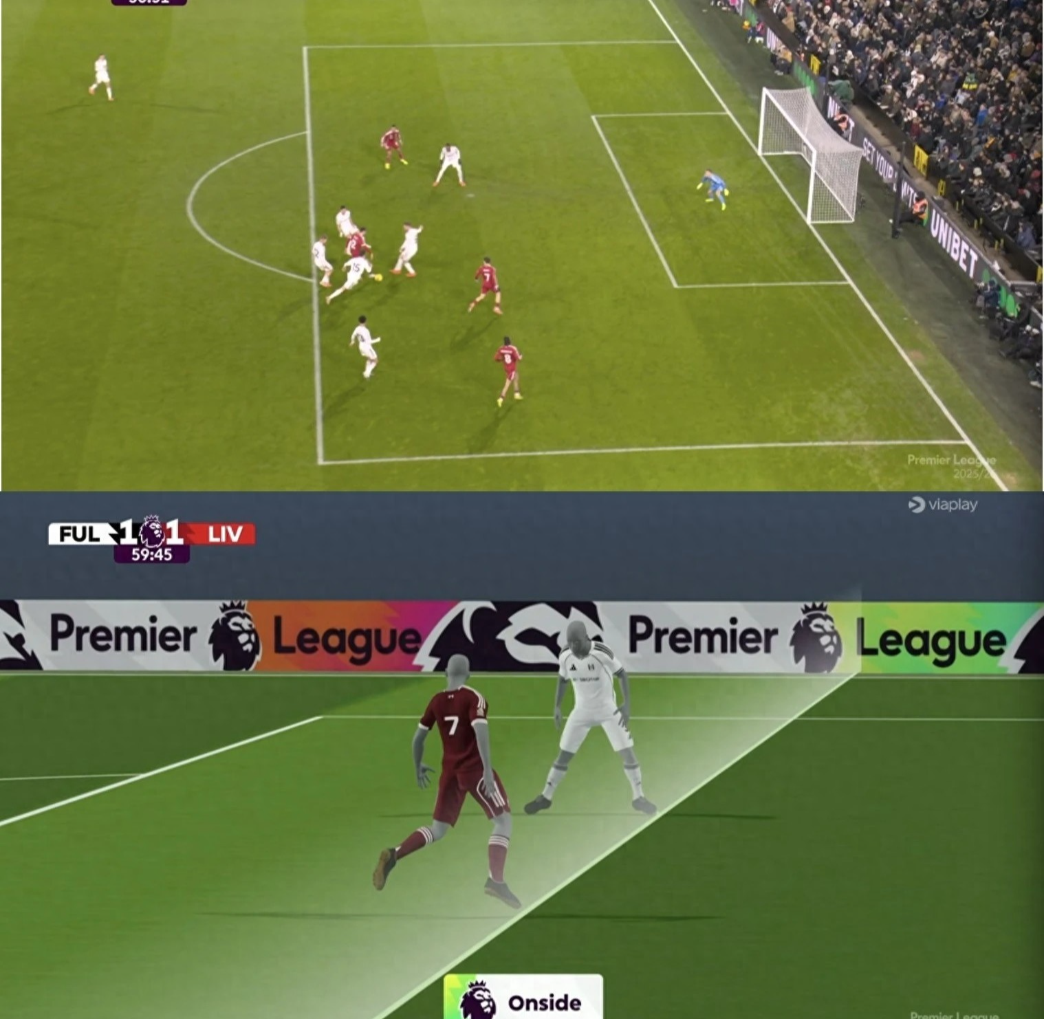与部分欧洲联赛追求毫米级精确不同,英超为避免技术误差带来的误判,在越位判定中设定了约5厘米的宽容区间。也就是说,在极其接近的越位边缘情况下,系统会优先倾向于支持进攻方,认定其“不越位”。