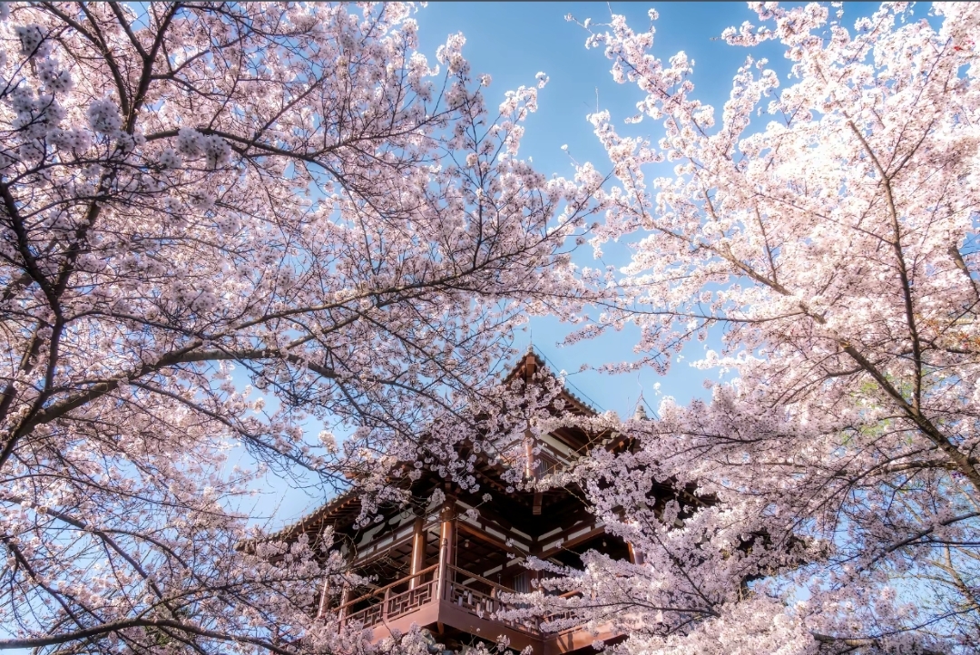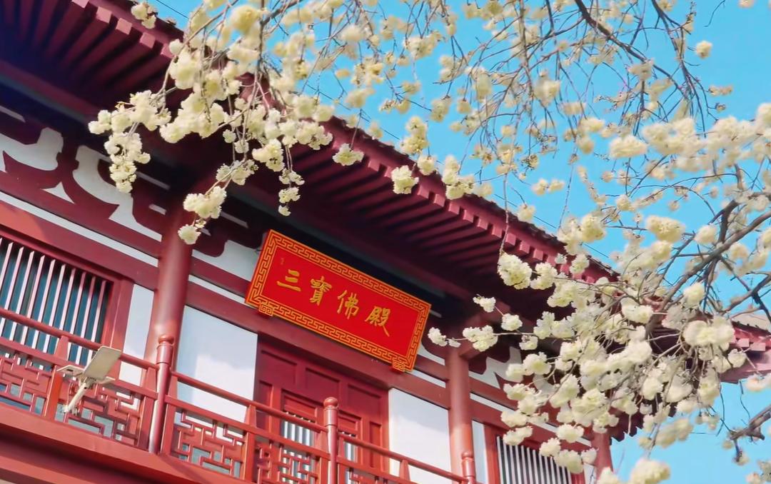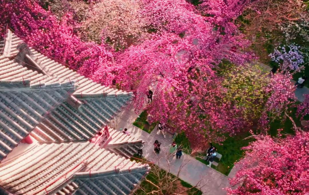 红墙古寺配漫天粉樱,日系与唐风碰撞,拍照绝美。