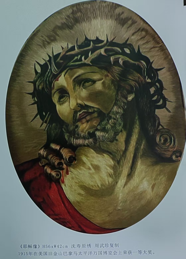 1915 年,《耶稣像》在巴拿马万国博览会上摘得桂冠,中国刺绣首次登上世界艺术之巅。那幅绣品里,耶稣头戴荆棘冠的悲壮神情,全凭旋针、虚实针的交替运用:发丝松软如禅者披发,肌肤温润似含悲悯,血迹渗额的肌理,竟能通过丝线粗细变化触手可感。张謇为其题写 “世界美术家”,恰是赞其 “以针破界,以艺证道”的魄力。沈寿更将毕生感悟口述成《雪宧绣谱》,八章绣理从 “绣备”到 “绣通”,将民间技艺升华为 “审势、配色、求光、肖神”的艺术禅学,完成了从 “技”到 “道”的跨越。