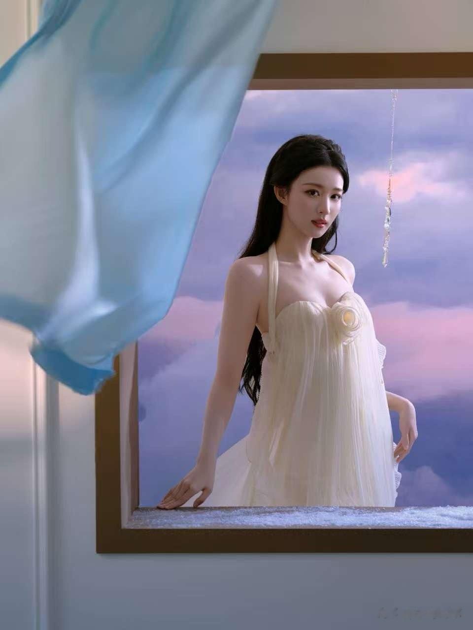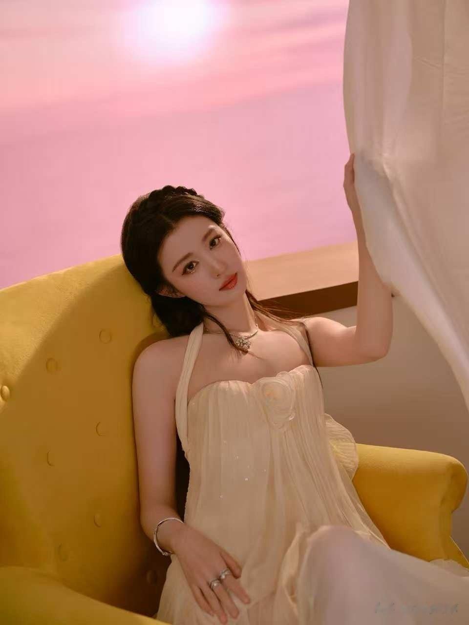 王楚然|淡黄长裙 温柔具象化!肤白胜雪!