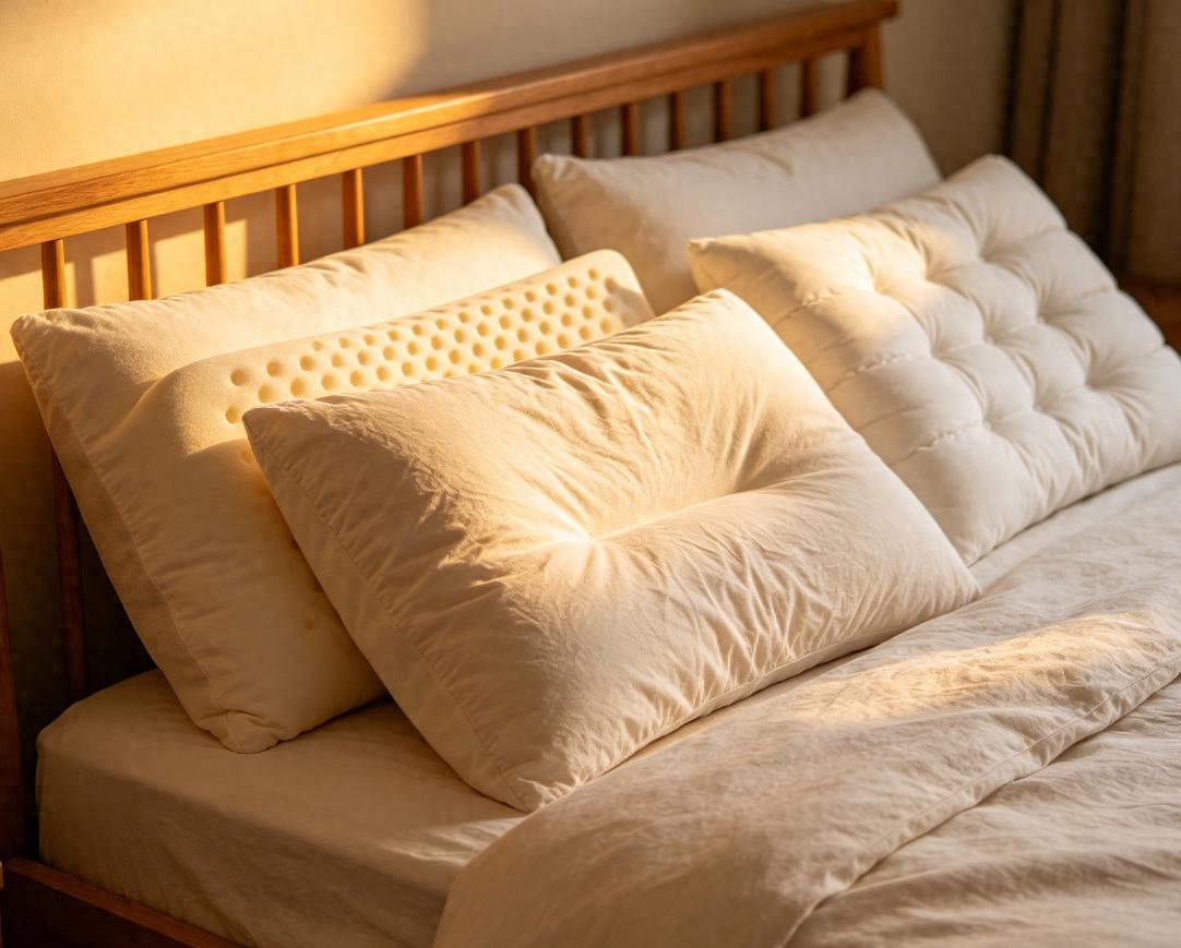 选枕难题:市面上枕头品牌五花八门,有会释放有害气体的,有填充物杂乱易滋生微生物的,还有宣称人体工学设计的,实际用着只会让人头部发沉、引发头疼压迫。