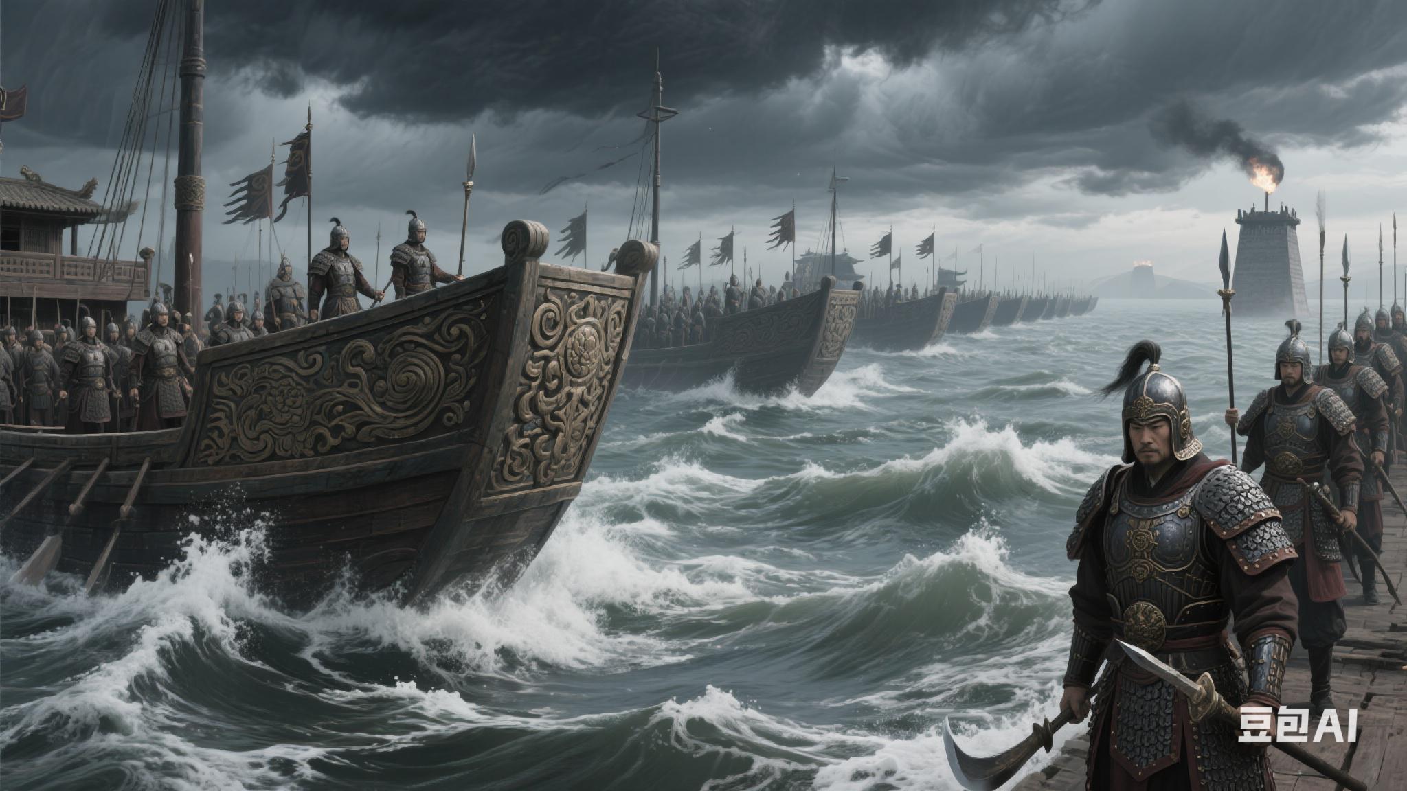 在这绝望之际,湖面突然刮起猛烈的东北风,向陈友谅的大船狂吹。