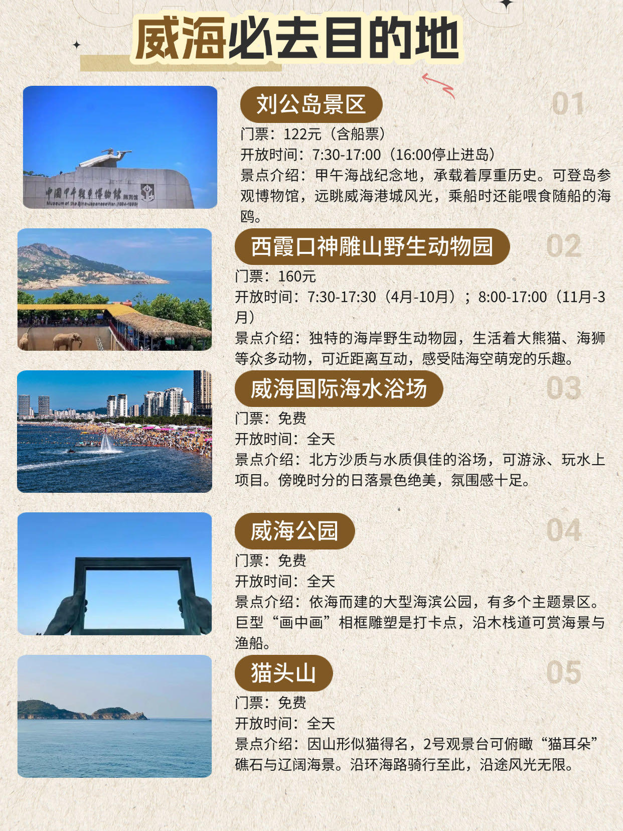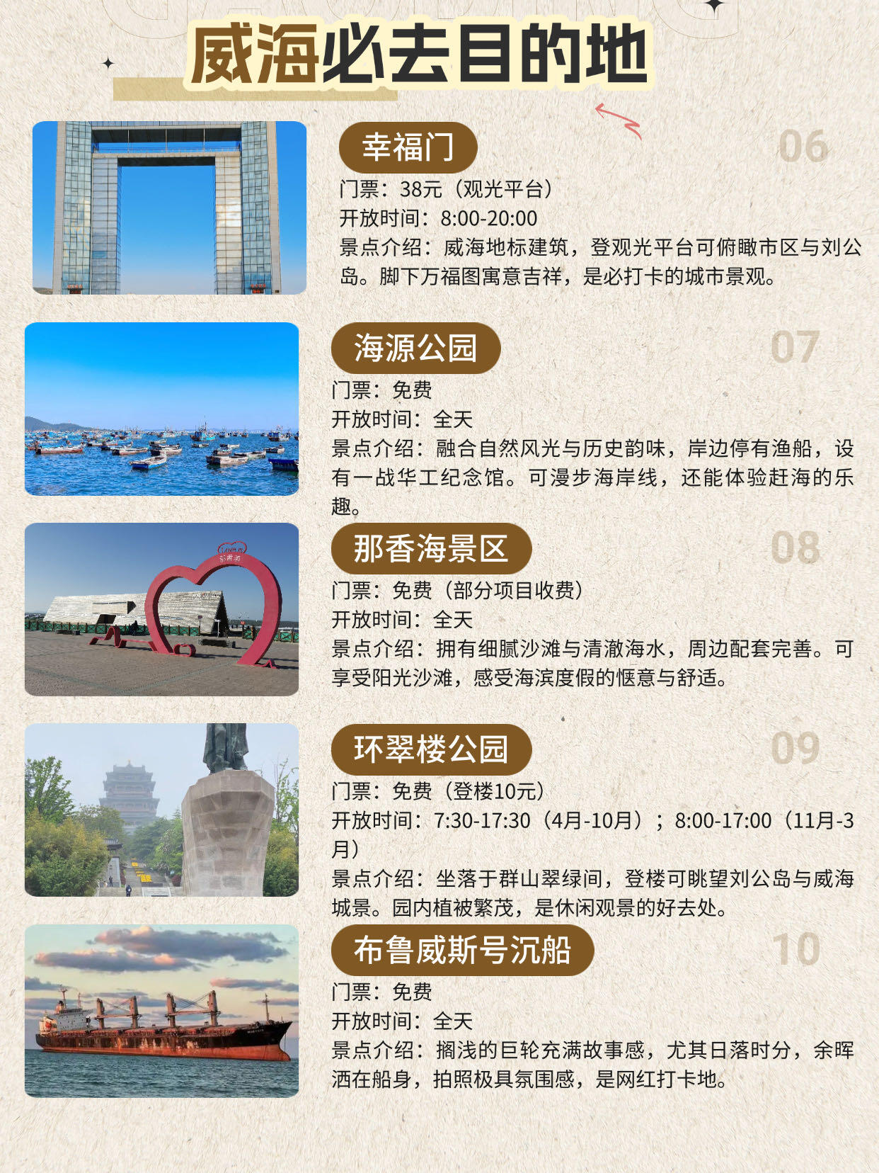 还有威海公园、海源公园、那香海等,10个景点都安排得明明白白~
