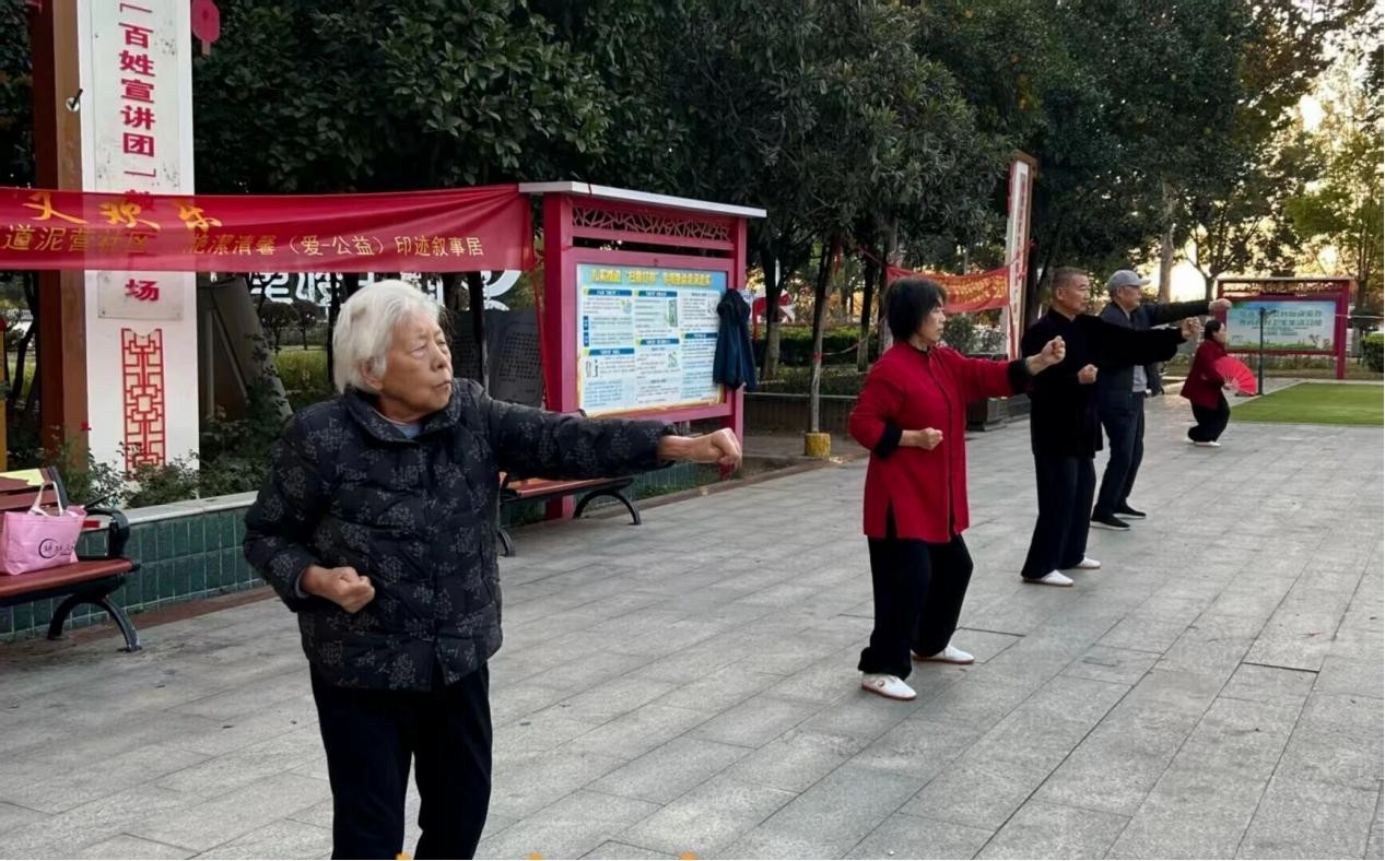 11月的每个清晨,仲景街道泥营社区健康主题公园广场上都会有一抹靓丽的“银发风景”。30多位老人迎着晨光随着舒缓的音乐舒展身姿,八段锦的柔美、太极拳的沉稳、太极剑的飘逸与太极扇的灵动交相辉映,勾勒出一幅生动鲜活的银龄健康画卷。由社区精心打造的“银龄健康圈”养生项目,正以润物无声的方式,持续为辖区老年群体的幸福晚年注入持久活力。