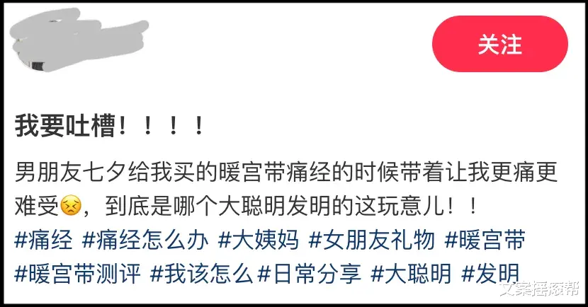 有网友说,他们可能无法理解有个平替的东西,叫暖宝宝,毕竟的他们的母语是无语...如果要雪中送炭,不一定能指望男朋友,但是想要火上浇油,你完全可以相信他们。本来痛经就很烦了,带上暖宫腰带,更烦了...