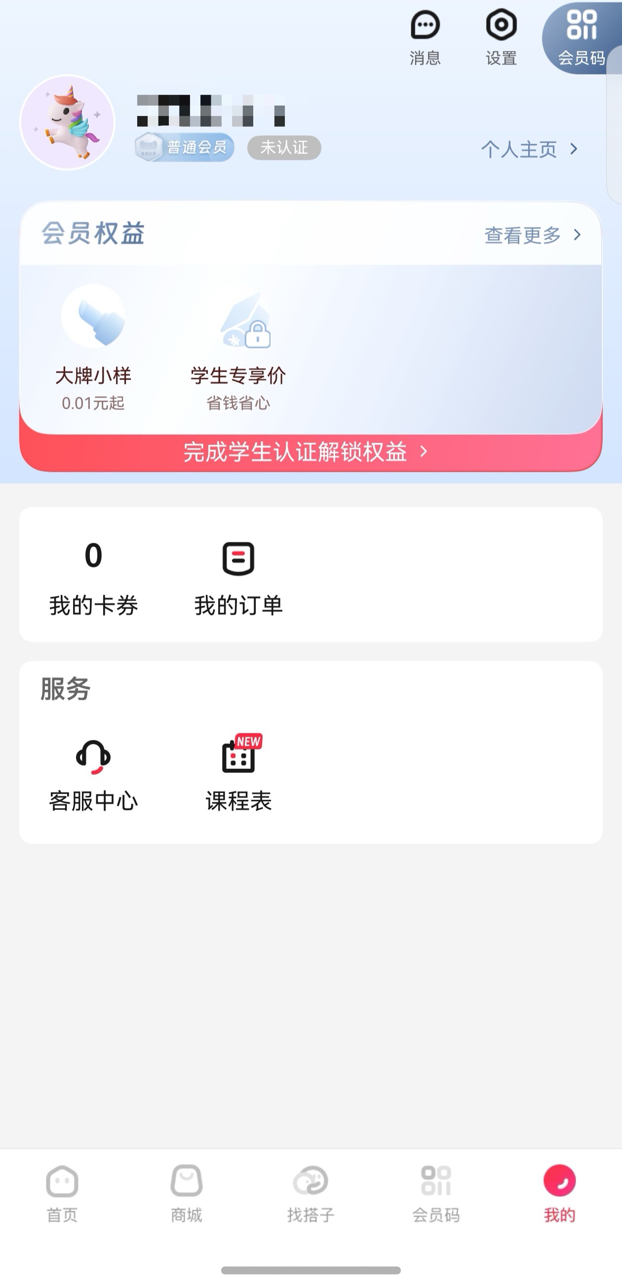 “消息与设置”实时查看互动消息,学生认证、账号安全设置一键搞定,超实用!支付码、大牌小样、学生专享权益随用随点,券包、卡包、订单一目了然,找啥都超快!
