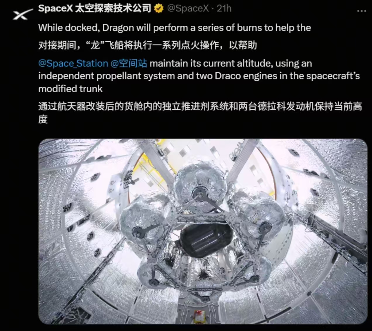 Space X公司在社交媒体上发布的