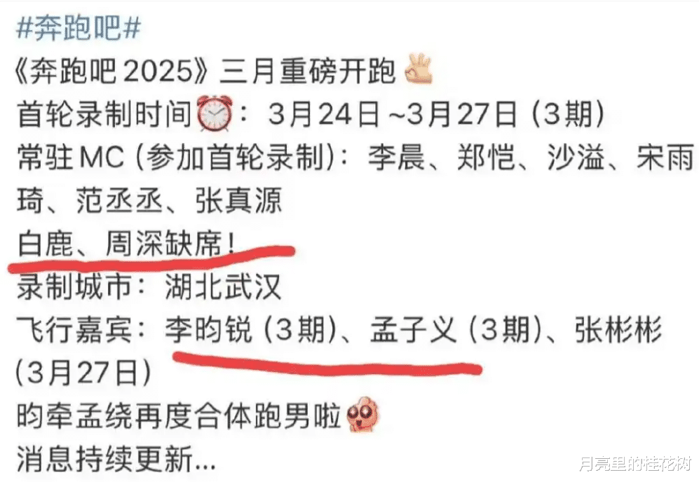 综艺篇公布“2024综艺影响力榜”TOP10,《奔跑吧 12》位列第二,有网友:去年上半年的阵容是最好的阵容。奔跑吧13阵容有新变动,周深、白鹿的缺席引发热议:当初的“奔跑吧兄弟”早就变成“茶话会吧兄弟”了;期待邓超、陈赫等回归!