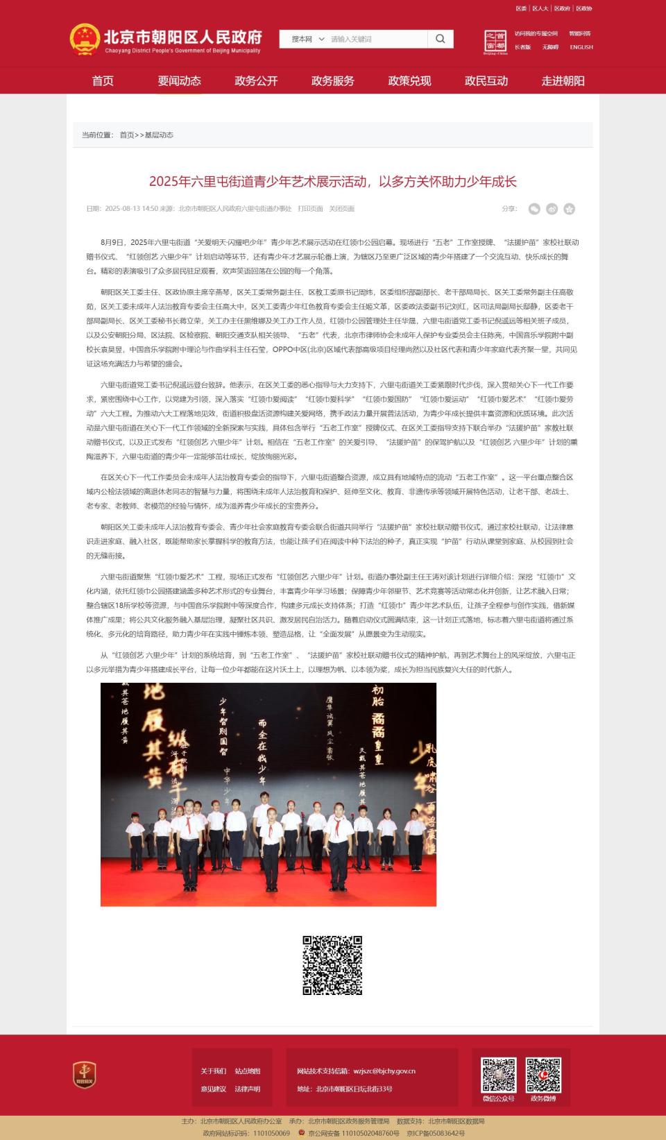 乐维艺术团这次出色的表演不仅赢得了现场观众的高度评价,更获得了官方的认可。演出照片刊登于北京市朝阳区人民政府网站关于本次活动的新闻报道中,成为本次活动的重要视觉记录。