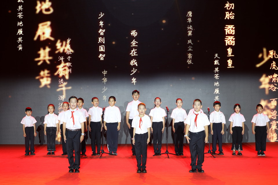 当音乐响起,孩子们迈着整齐的步伐登上舞台,立刻吸引了全场观众的目光。他们眼神坚定,动作协调,朗诵声音洪亮而富有感染力,完全没有少年人常见的紧张与稚嫩,反而展现出超越年龄的沉稳与大气。