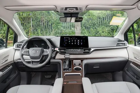 2.5L 燃油版(舒适版 / 豪华版)搭载 209 马力自吸发动机 + 8AT 变速箱,WLTC 油耗 8.2L/100km,适合年行驶里程 1 万公里以内的家庭 —— 城市通勤动力平顺,但满载 7 人 + 行李时,高速超车需深踩油门,发动机噪音较明显。配置上标配 7 座布局(2+2+3)、电动侧滑门、前后驻车雷达、9 气囊,满足基础安全与便利性;但短板突出:织物座椅、手动空调、16 英寸轮毂,无倒车影像(仅后雷达),后期加装 360° 影像 + 中控屏成本超 6000 元。