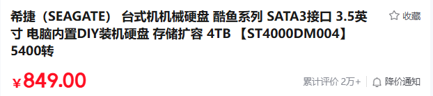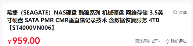 4TB-8TB(家用盘):性价比反而最低! 以4TB为例,目前家用SMR盘(如希捷酷鱼)要850元左右,而CMR的入门NAS盘(如希捷酷狼)则要959元。算下来家用盘每GB成本高达0.20元,而CMR的NAS盘反而每GB只贵3分钱。