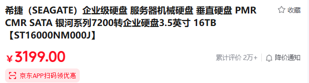 16TB+(企业盘/NAS盘):真正的性价比之王! 这才是HDD的“主战场”。小A发现,16TB的企业盘(如希捷银河Exos、西数Ultrastar)算下来每GB成本反而不到0.20元,这还是最近一波跟风SSD大涨价后的价格,更不用谈巨大的性能和可靠性差距了!