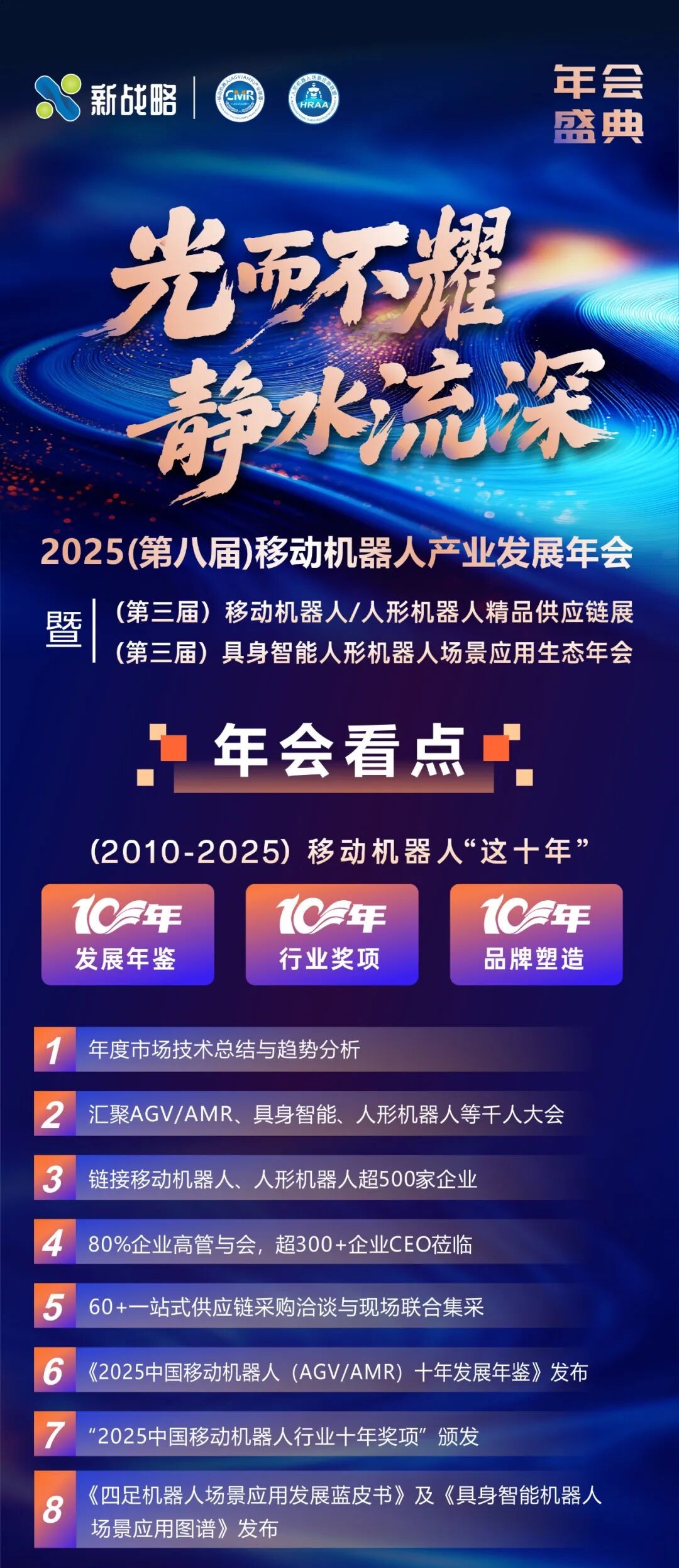 与此同时,会议期间还将发布重磅《2025中国移动机器人十年发展年鉴》《四足机器人场景应用发展蓝皮书》等行业报告,为产业链上下游提供系统、权威、可决策的参考依据。