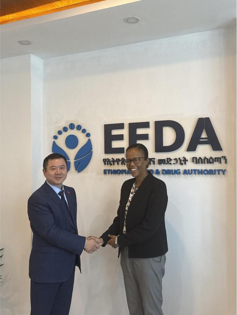 张敏副会长在会谈中表示:中国与埃塞俄比亚在医疗卫生领域互补性强、合作基础扎实。今天,我们不仅带来了中国企业对高质量药品、食品和化妆品‘走出去’的需求,更希望通过与EFDA的深度协作,把中国在监管科学、质量追溯和数字认证方面的经验分享给非洲朋友,让‘中国制造’和‘中国标准’在埃塞俄比亚乃至东非市场落地生根。赫兰局长关于在非洲就地加工中药原材料的提议极具战略眼光,我们将积极推动国内中药企业来埃考察,共同打造‘种植—提取—制剂’全产业链,实现互惠共赢。