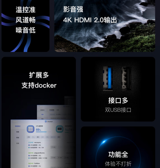 它还支持 Docker 功能,哪怕是最近爆火的 OpenClaw “养龙虾” AI 玩法,也能轻松解锁,轻度玩机完全够用。千元级的价位,就能拿下能存能打、小白友好的全能 NAS,不管是家庭存储还是新手入门,都能闭眼冲!