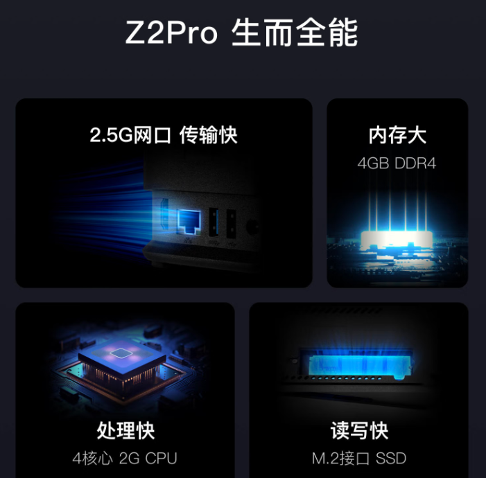 硬件配置完全满足家用需求:搭载 Rockchip RK3568 四核 2GHz 处理器,搭配 4GB DDR4 内存,多设备同时访问、后台下载、高清播放都丝滑不卡顿极空间。