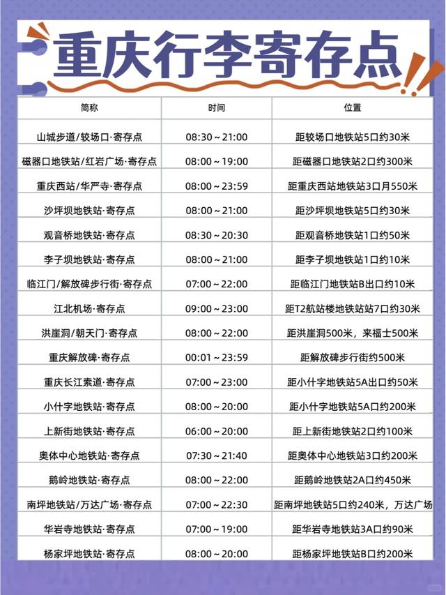 ✅重庆其他寄存点重庆西站/华严寺重庆站/重庆汽车站奥体中心地铁站磁器口地铁站大礼堂地铁站大坪地铁站观音桥步行街华岩寺地铁站江北机场/渝北广场较场口/解放碑沙坪坝地铁站小什字地铁站李子坝地铁站....不管是旅游、出差、或者去看演唱会,只要在景区、商场、车站、地铁站,都有行李寄存处~
