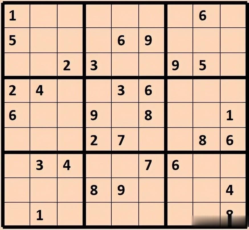 我们以下面的数独为例推理、推算每一个小格可以填入的数字: