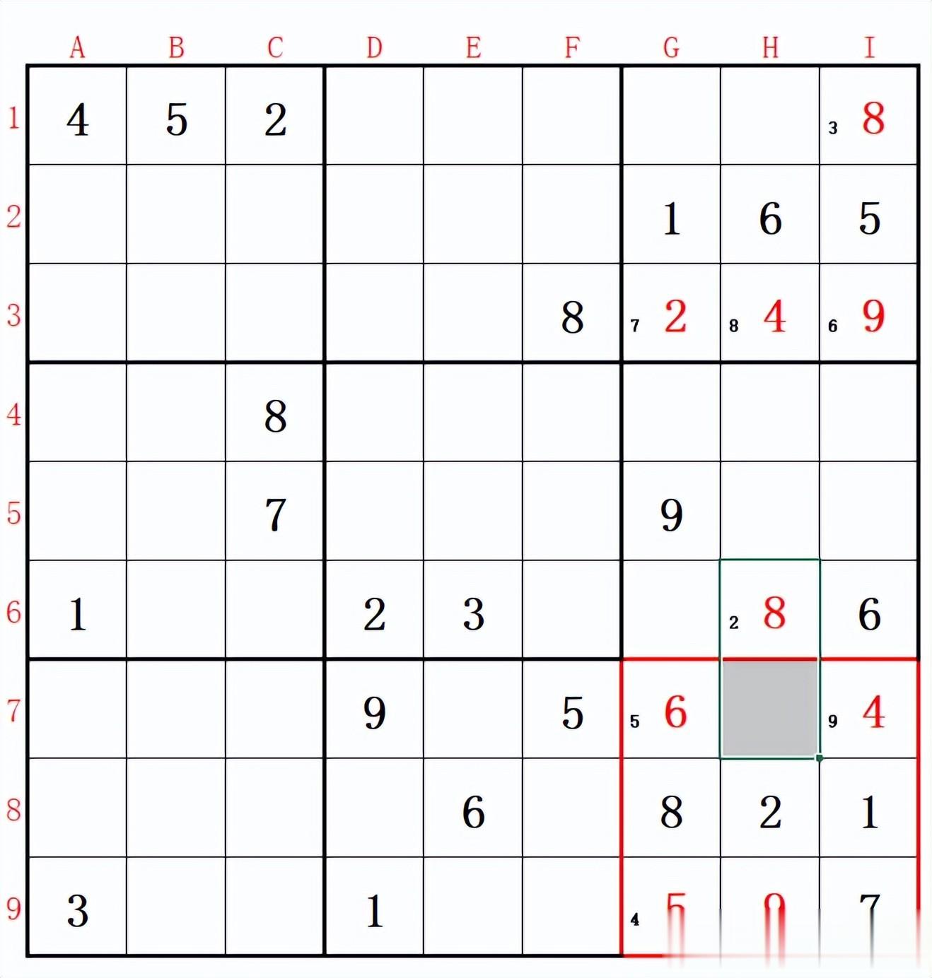 如在G7~I9这个小宫中,9只能填在H9格中!