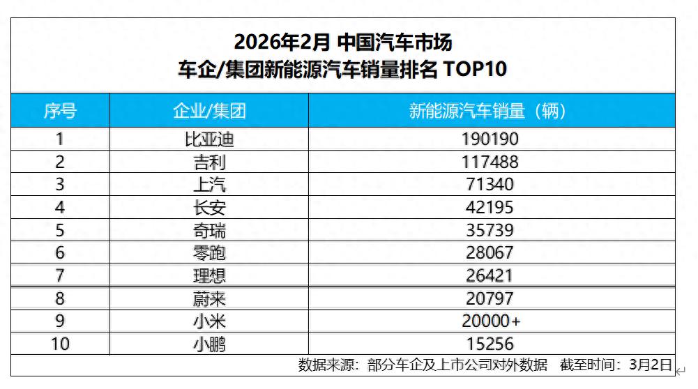 2026 年二月,新春消费节奏放缓的大背景下,中国新能源汽车市场却跑出了一匹 “常胜黑马”—— 比亚迪以 190190 辆的新能源汽车销量再度登顶行业榜首,将连续蝉联新能源销冠的纪录刷新至 57 个月。这份淡季不淡的成绩单,不仅是比亚迪自身实力的彰显,更勾勒出中国新能源汽车行业的竞争新格局:头部企业的壁垒持续加固,行业分化的趋势愈发清晰。