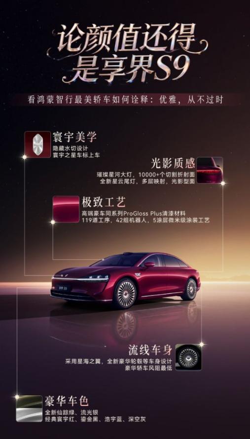 当然,作为全景智慧旗舰轿车,享界S9的豪华与智能同样令人惊艳。外观上,“寰宇之星”新车标、星云尾灯、百万像素智慧大灯与黑曜套件,构建极具未来感的视觉语言;座舱内,1962mm超宽空间、Nappa真皮座椅、副驾与后排零重力套装,搭配25单元华为悦彰音响与鸿蒙ALPS健康座舱,营造移动的奢适殿堂。智能层面,超十屏交互、鸿蒙智能座舱、智慧电动门(支持隔空开门)、电子外后视镜等配置,让科技仪式感贯穿始终。