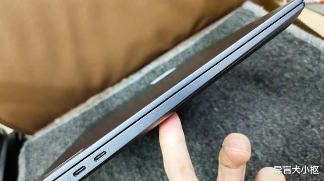 在屏幕下方是YOGA14S的按键区,它的布局并无特别,是联想产品的正常水平。按键布局居中,键盘键位有点密集,且方向键刻意缩小,部分按键需要组合点按生效。按键键帽颜色和机身配色保持一致,白色键符加白色背光,并不醒目。按键左右中框上,是YOGA14S的拓展接口区,它的设计很直接,给出三个c口,一个a口,电源键也放在这里。很显然,办公使用,接口不够用,要拓展坞分流。