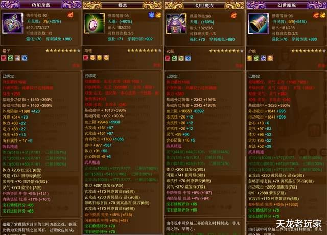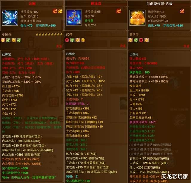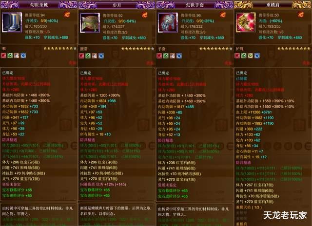 宝石打造上防具四孔上的是7级蓝宝石,攻击件上牺牲了部分减抗宝石,选择了猫眼石。