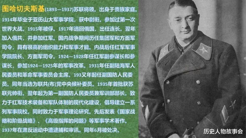 图哈切夫斯基(Михаил. Николаевич. Тухачевский,1893年2月16日—1937年6月11日),是一名年轻有为的战略家、军事理论家,苏联最早的五名元帅之一。然而,遭遇希特勒德国的反间计,深深陷入间谍案,最终,他和一批苏军高级将领被斯大林下令枪决 。