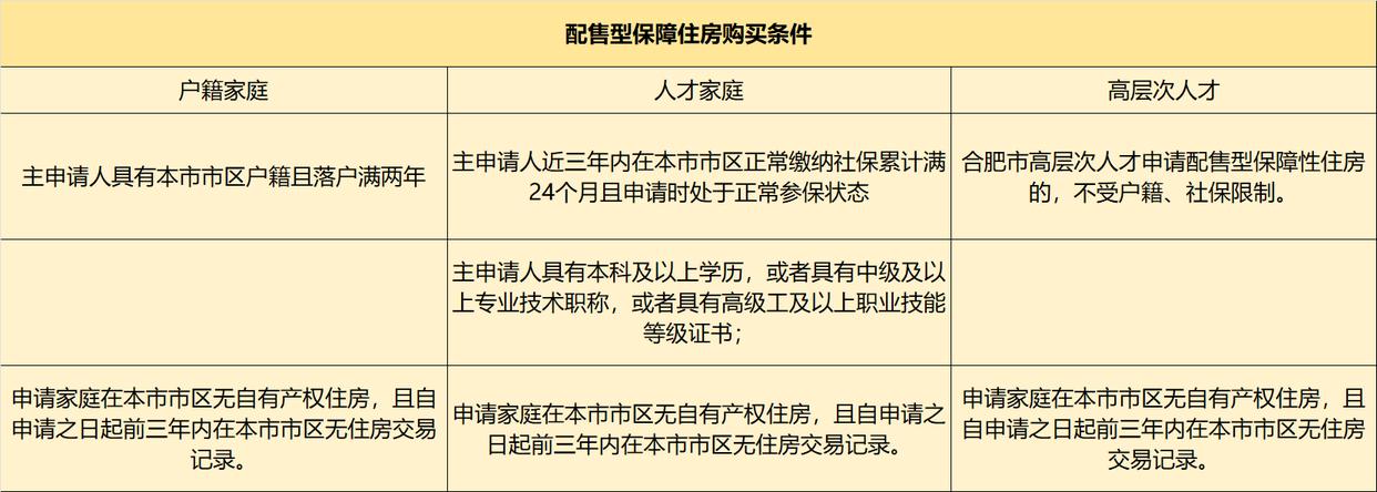 购买条件这块,配售型保障用房分为户籍家庭、人才家庭和高层次人才;