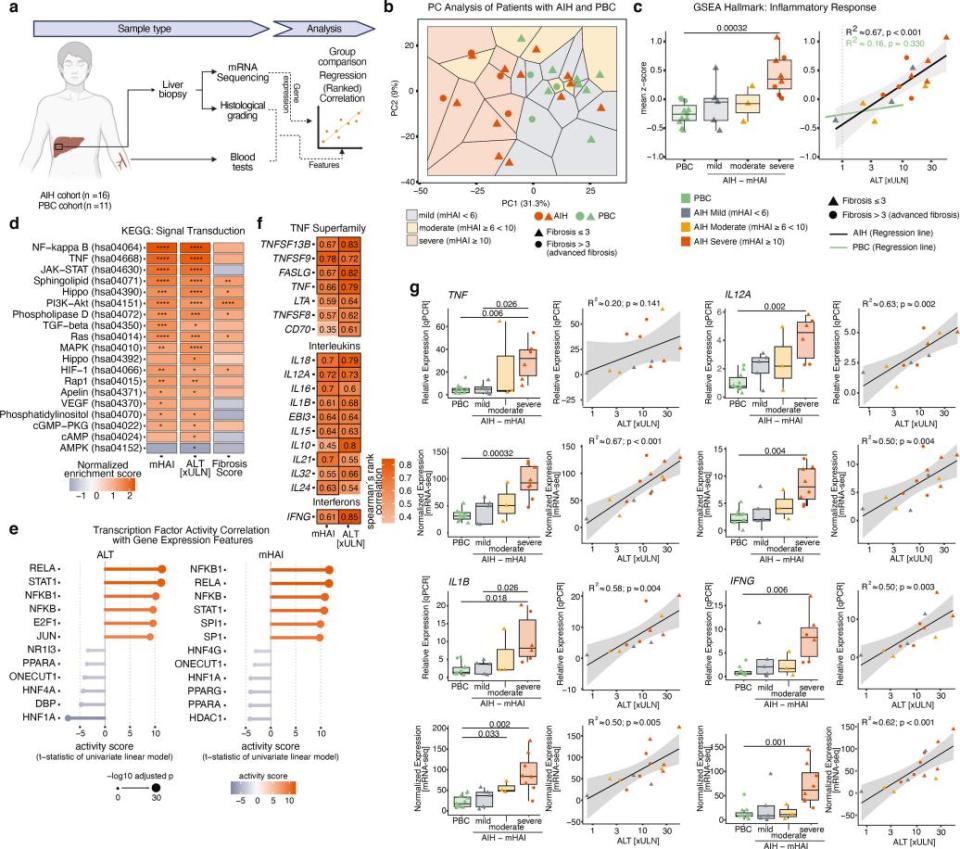 图1. AIH疾病活动与促炎通路和细胞因子的相关性