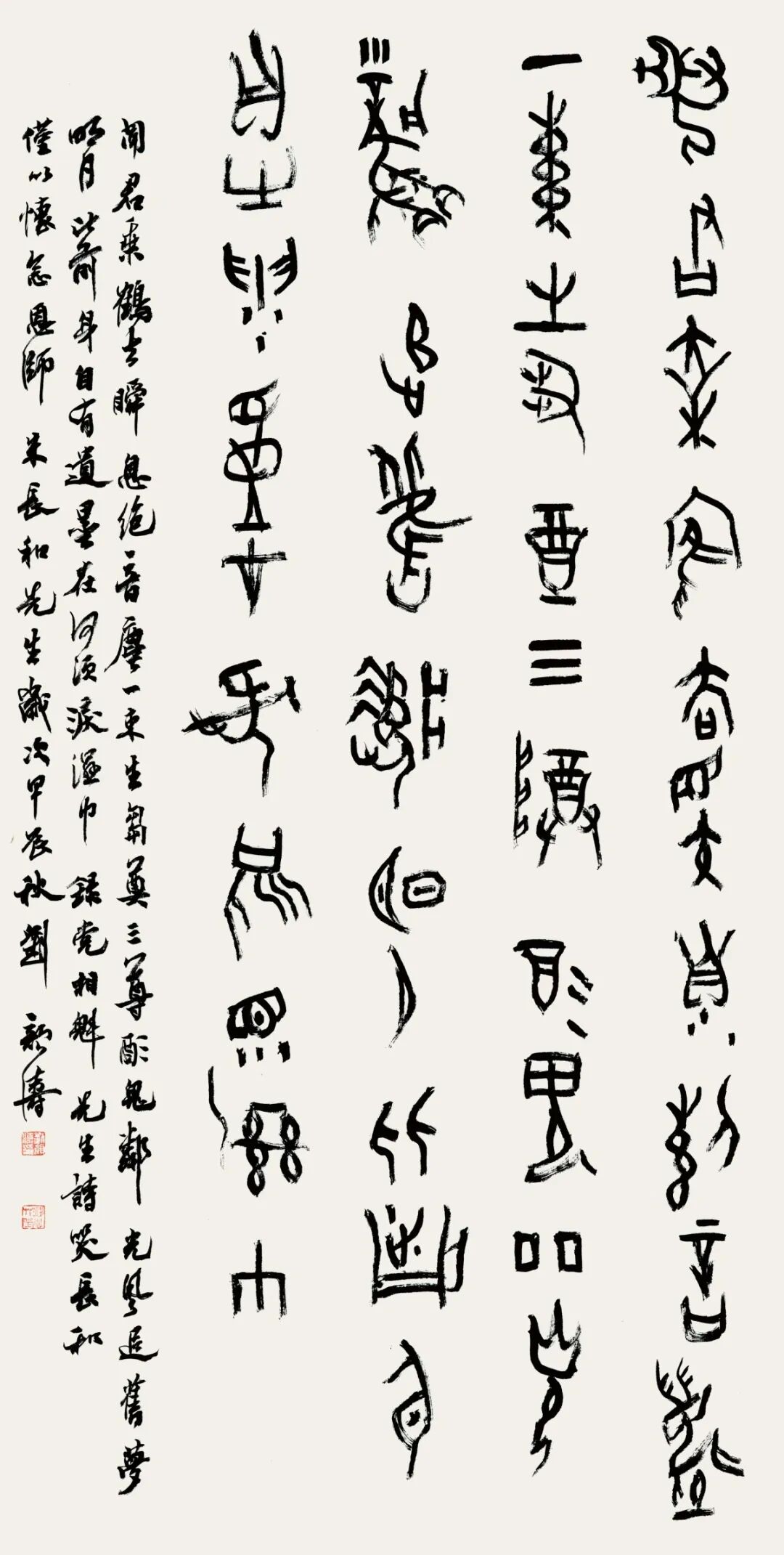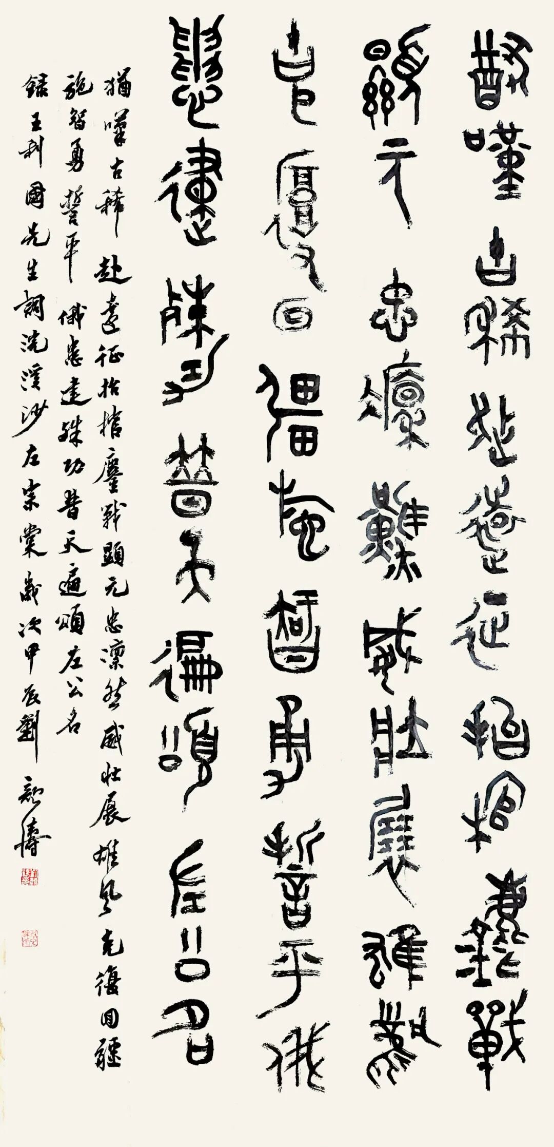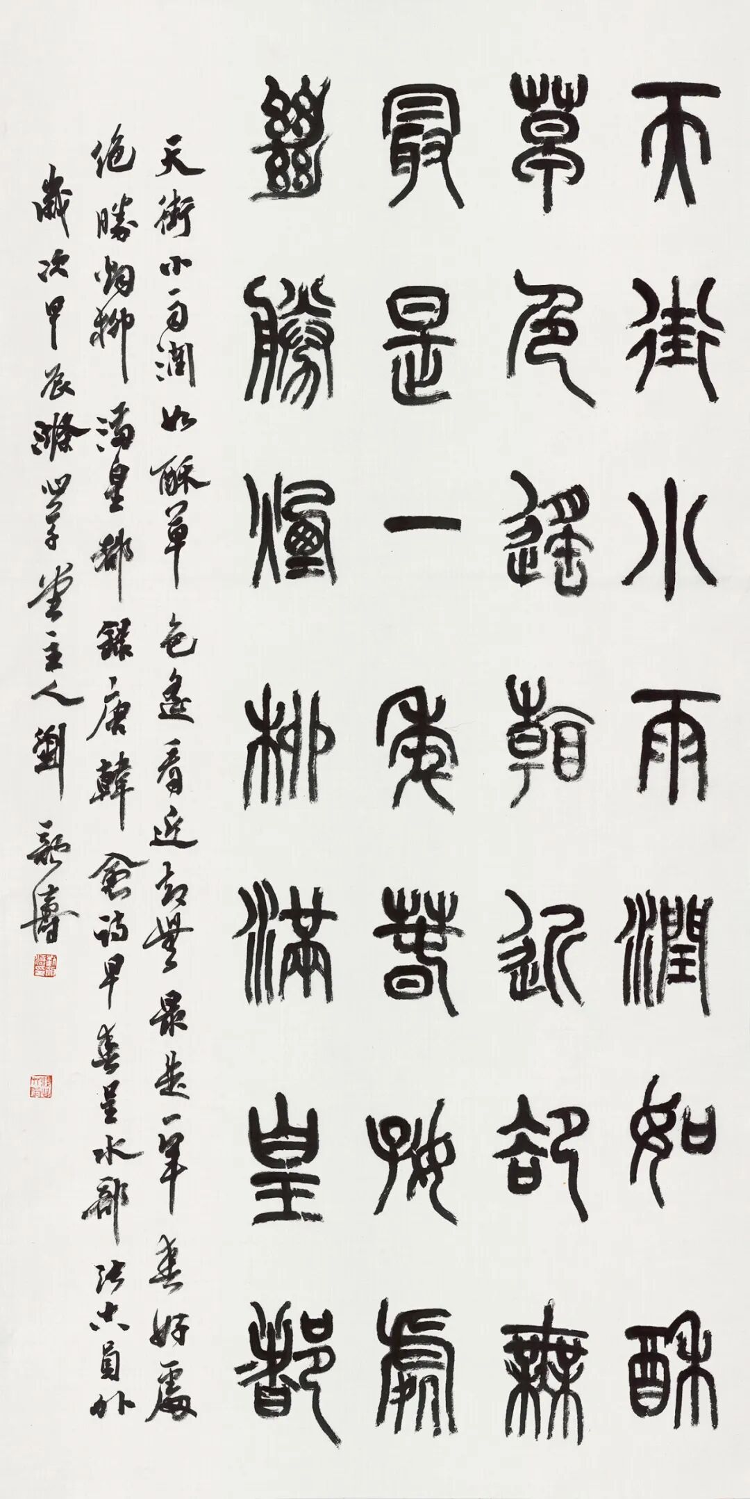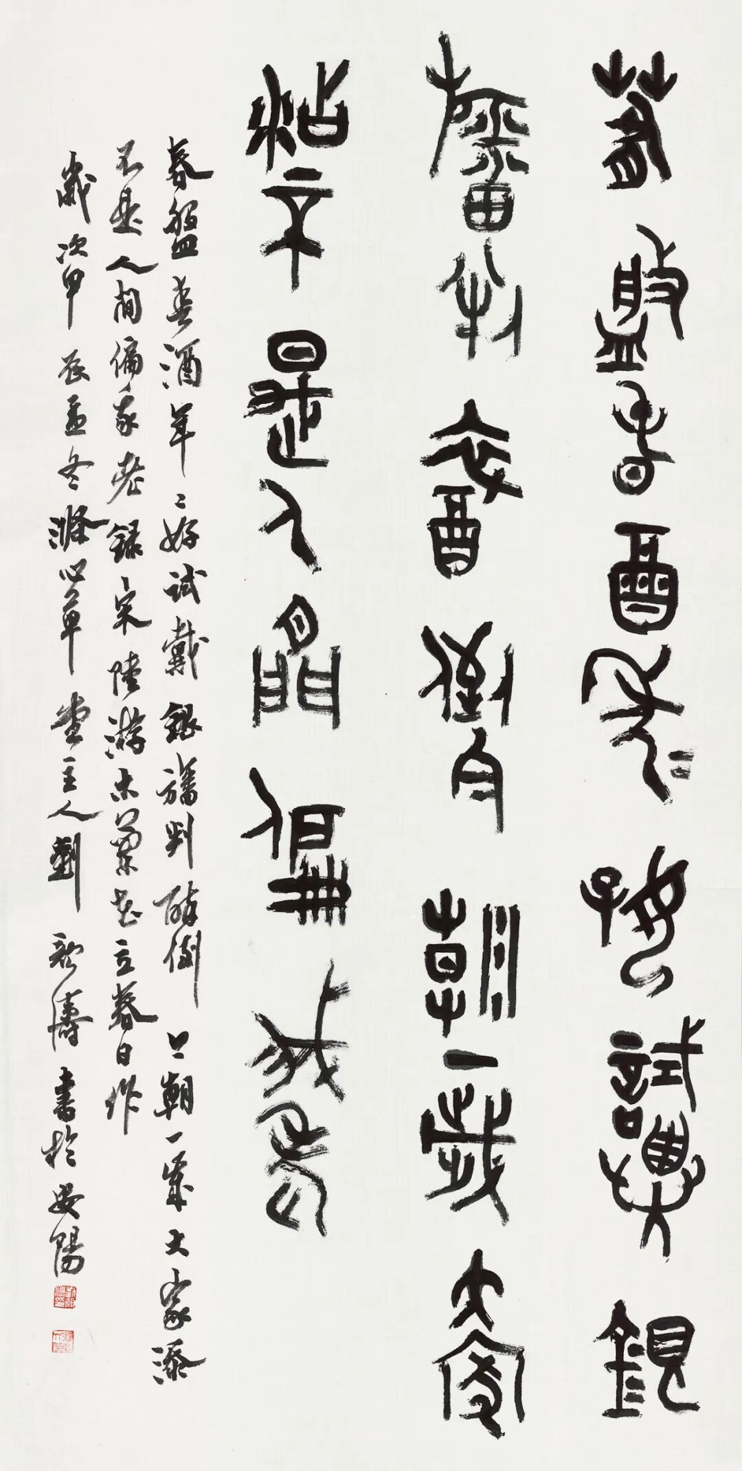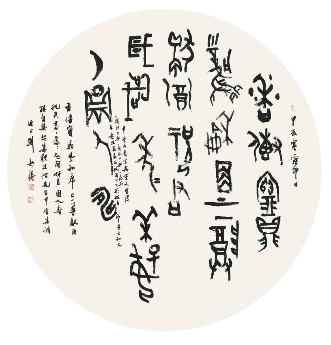 从清人小篆入手筑基,进而上追秦汉,直溯商周金文源头,是篆书登堂入室的经典路径。回顾2018年的“全国第三届篆书展”,清人小篆风格的作品曾占据压倒性优势。短短七年后,在本届展览中,商周金文力量的强势崛起,清晰地表明了篆书创作的深化与发展。这股金文热潮,并非无源之水,它实质上是自清代以来篆书复兴脉络在当代的承续与演进,是时代审美选择与艺术内在规律共同作用的“时势必然”。或许,经过几代人坚持不懈的潜心探索,金文的当代创变,真有可能成为这个时代在继清代小篆兴盛之后篆书发展史上留下的鲜明印记。因此,从上届的“小篆主流”到本届的“金文凸显”,可视为当代篆书创作在“沿流溯源、汲古出新”道路上的一次有力推进。