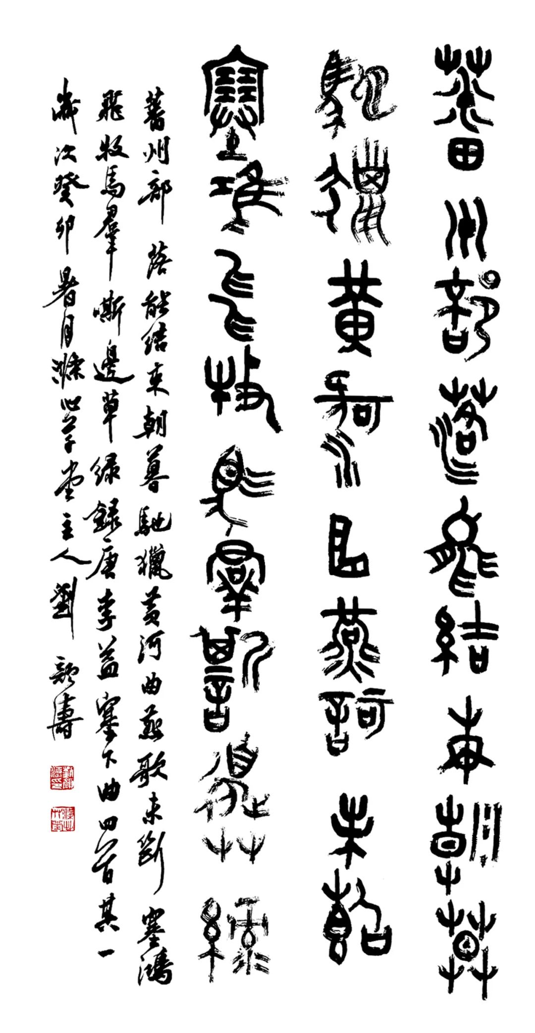 最后,需要特别提醒广大投稿者:务必严格遵守征稿启事的各项要求。本届及往届展览中,均有作品因书写材料不符、尺寸超限、未钤印章等“细节”问题,在评审中被取消资格。“一枝一叶总关情”,作品中的每一个细节,从纸张选择、用印规范到落款书法,都是其不可分割的有机组成部分,共同决定着作品的完整性与艺术高度。尤其是篆书作品的落款,往往是不少作者的软肋,亟需加强。