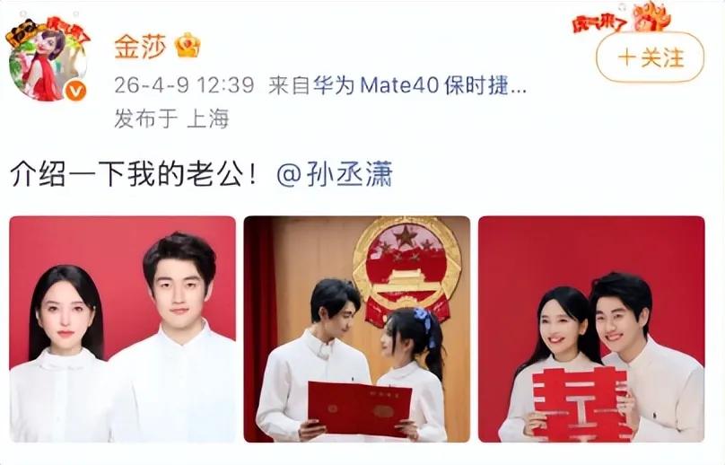 尽管金莎与孙丞潇4月9日官宣结婚,但是细细看,两人领证时间为2026年2月13日,推迟了近2个月才公布。不过,金莎与孙丞潇此前在综艺节目中表示,两人会步入婚姻殿堂,如今修成正果了。