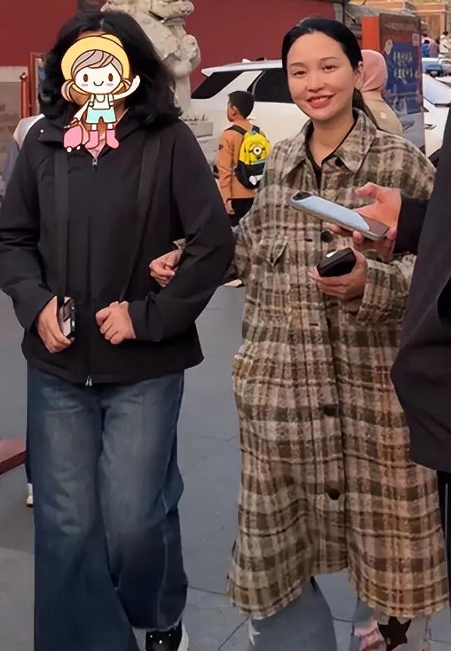 金莎穿着一件长款格子外套,下搭牛仔裤。这样穿搭显胖,特别是小腹有点微微隆起。