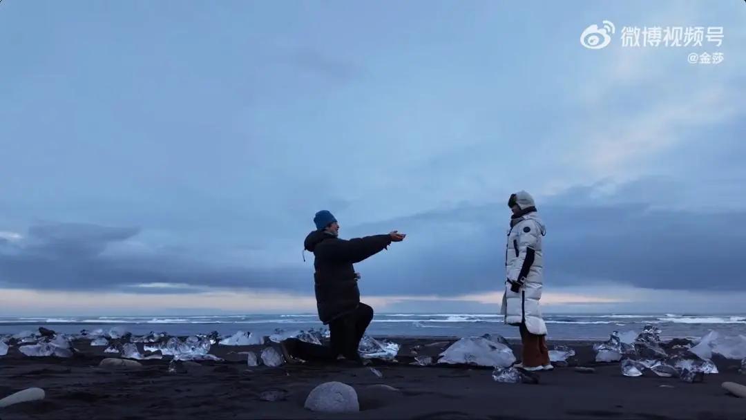 2025年12月23日,孙丞潇晒出在冰岛钻石沙滩极光下向金莎求婚的画面,两人次日同步官宣订婚。