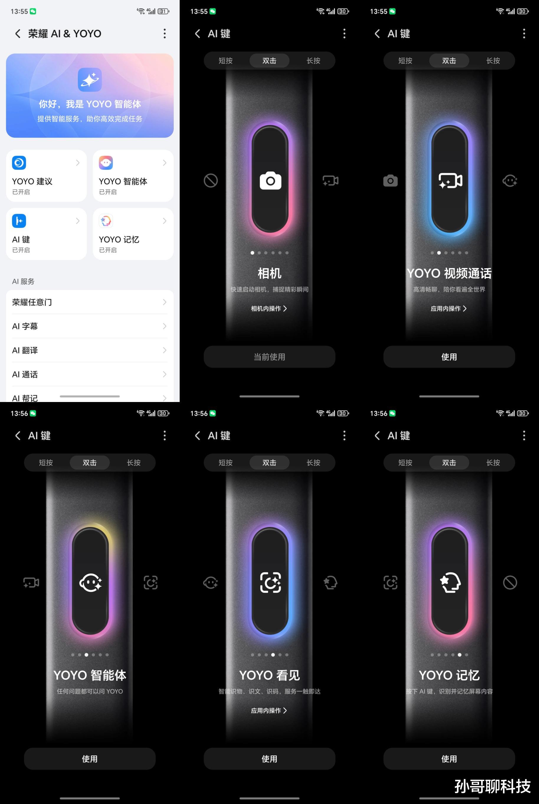 举个例子,荣耀Magic8 Pro侧边拥有一颗专属AI物理按键,支持短按、双击、长按三种触发方式,每一种触发方式可选择五种自定义设定,理论上有125种组合。系统默认长按AI按键唤醒YOYO视频通话,通过MagicVLM多模态理解模型智能聊天,相当给手机装上AI眼睛和大脑,可以快速回答问题,可以完成用户下达的复杂指令。