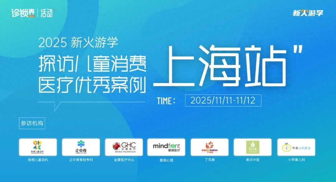 2025年11月11日-12日,新火游学·上海站,将带领学员深入多家具有代表性的儿童消费医疗机构与创新服务平台,实地解析“儿童消费医疗的产品化与服务创新路径”,在真实场景中寻找儿科机构破局与增长的新答案。