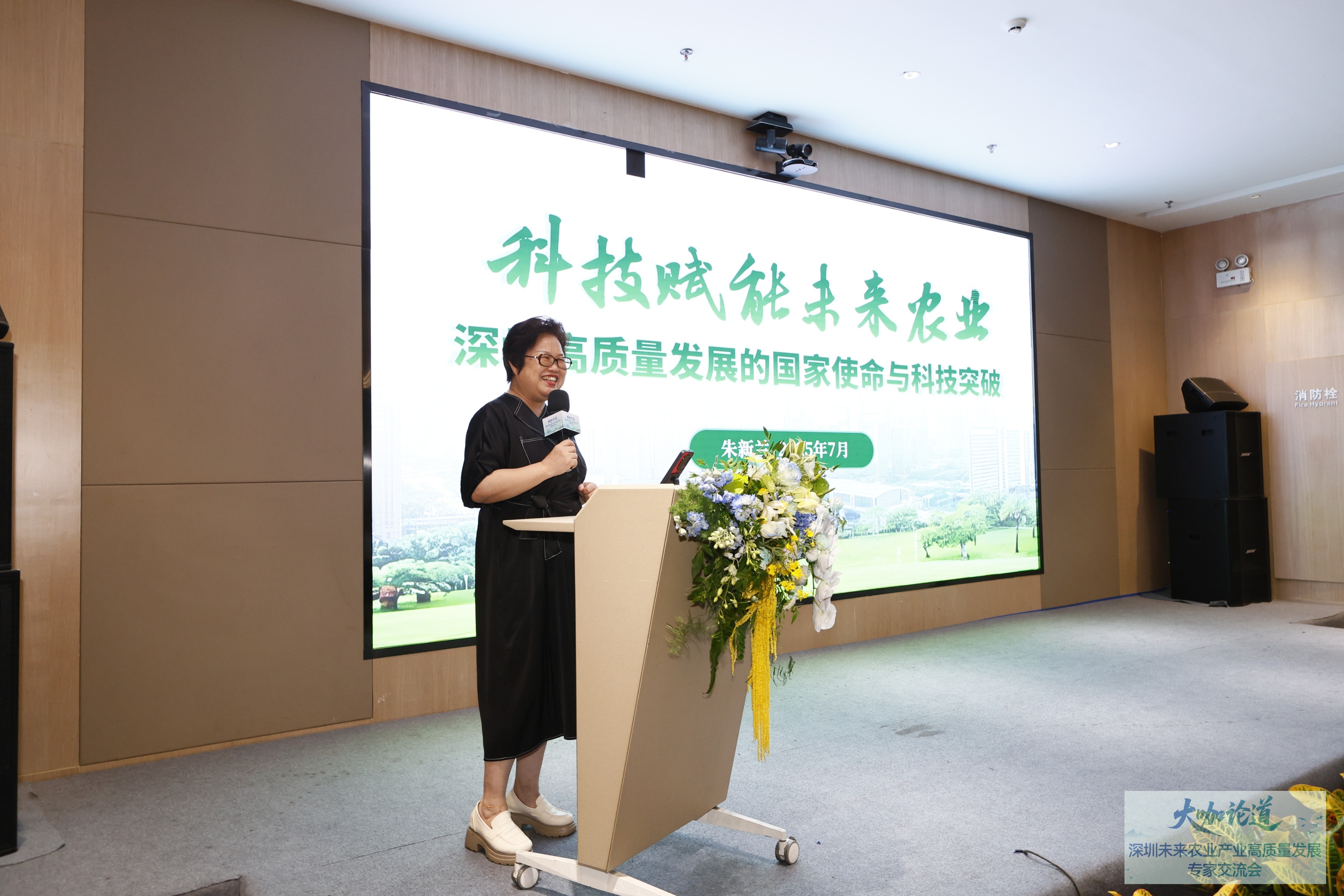墨子慈善乡村振兴公益基金理事长朱新兰在演讲中表示,深圳作为科技创新高地,肩负着以科技赋能农业的国家使命。她提出,深圳应聚焦种质资源保护、双碳目标及科技成果转化,通过基因编辑育种、合成生物技术提升农产品价值,并利用智能装备实现低碳种植,推动农业高质量发展,为国家农业强国战略贡献深圳力量。