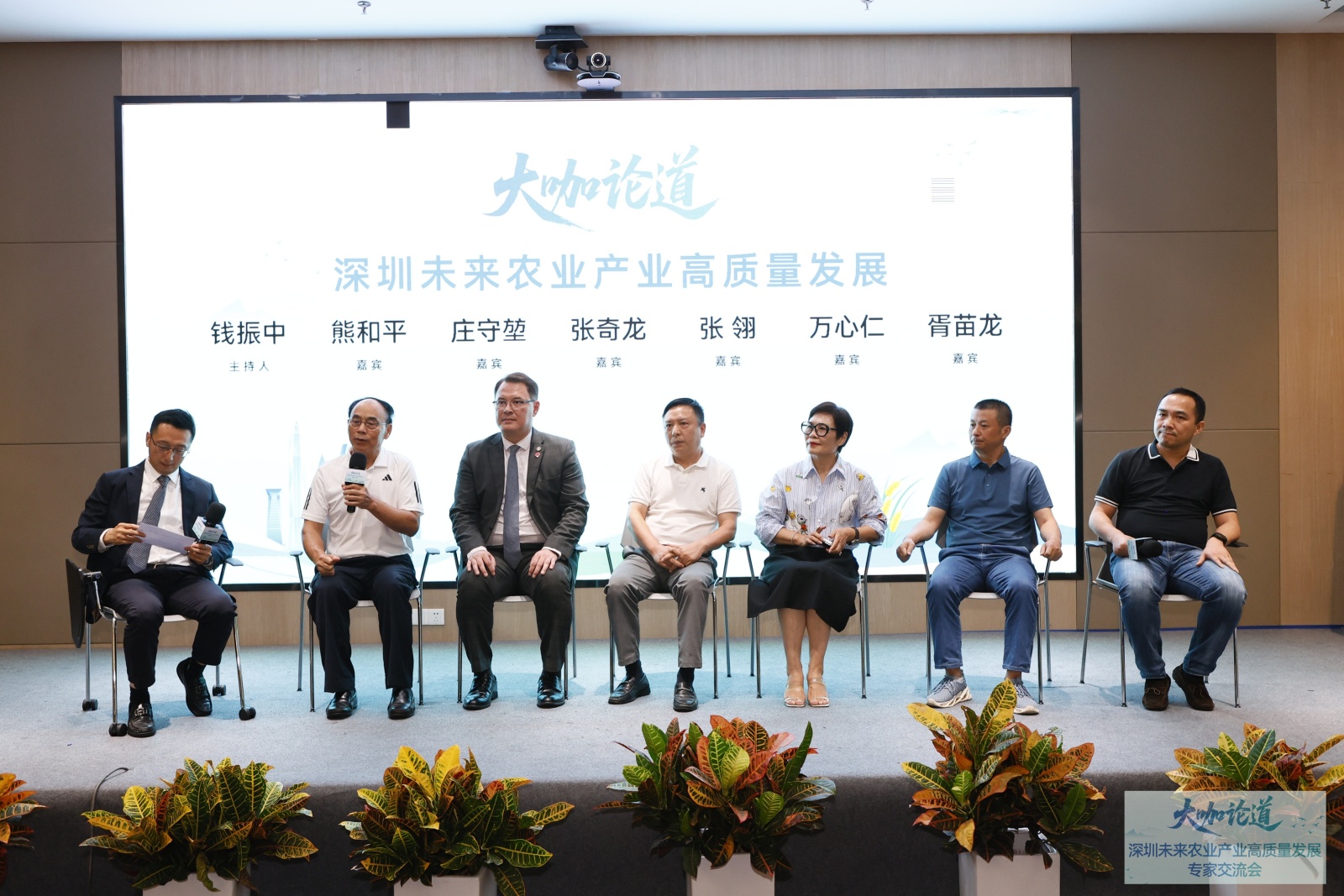 在“大咖论道”环节,六位来自不同领域的嘉宾围绕“深圳未来农业产业高质量发展”展开了深入讨论。中国作物学会麻类专业委员会会长熊和平指出,深圳农业产业基础雄厚,应充分利用科技优势,推动农业产业升级。广东省政协委员、粤港澳大湾区创新智库主席庄守堃则从政策层面提出了促进农业科技创新的具体建议。