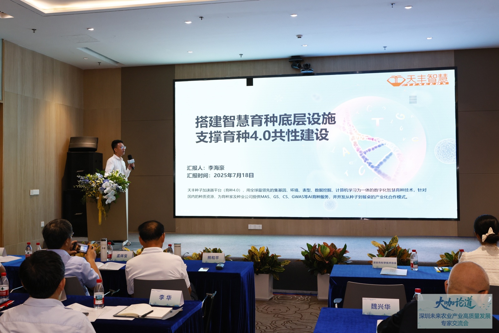 会议的最后环节是科技企业展示。北京天丰智慧农业科技有限公司、深圳市爱格丽生物科技有限公司、深圳汉植生物技术有限公司、中佳源物种(深圳)生物科技有限公司以及广东春耘智农科技有限公司等五家企业代表分别上台,展示了各自在农业科技领域的最新成果与创新实践,为与会嘉宾带来了耳目一新的体验与启发。