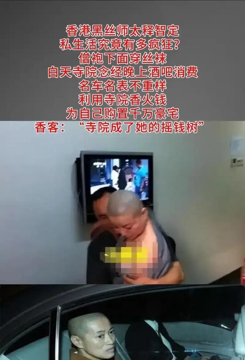 什么人什么时间发生了什么事?香港定慧寺,有个主持叫释智定。白天是出家人,穿着僧袍。到了晚上,她就换上假发和黑丝袜,开着宝马车出门。她的生活跟佛门一点关系都没有。她把信徒给的钱,都拿去买了好东西,都是别人一辈子买不起的。