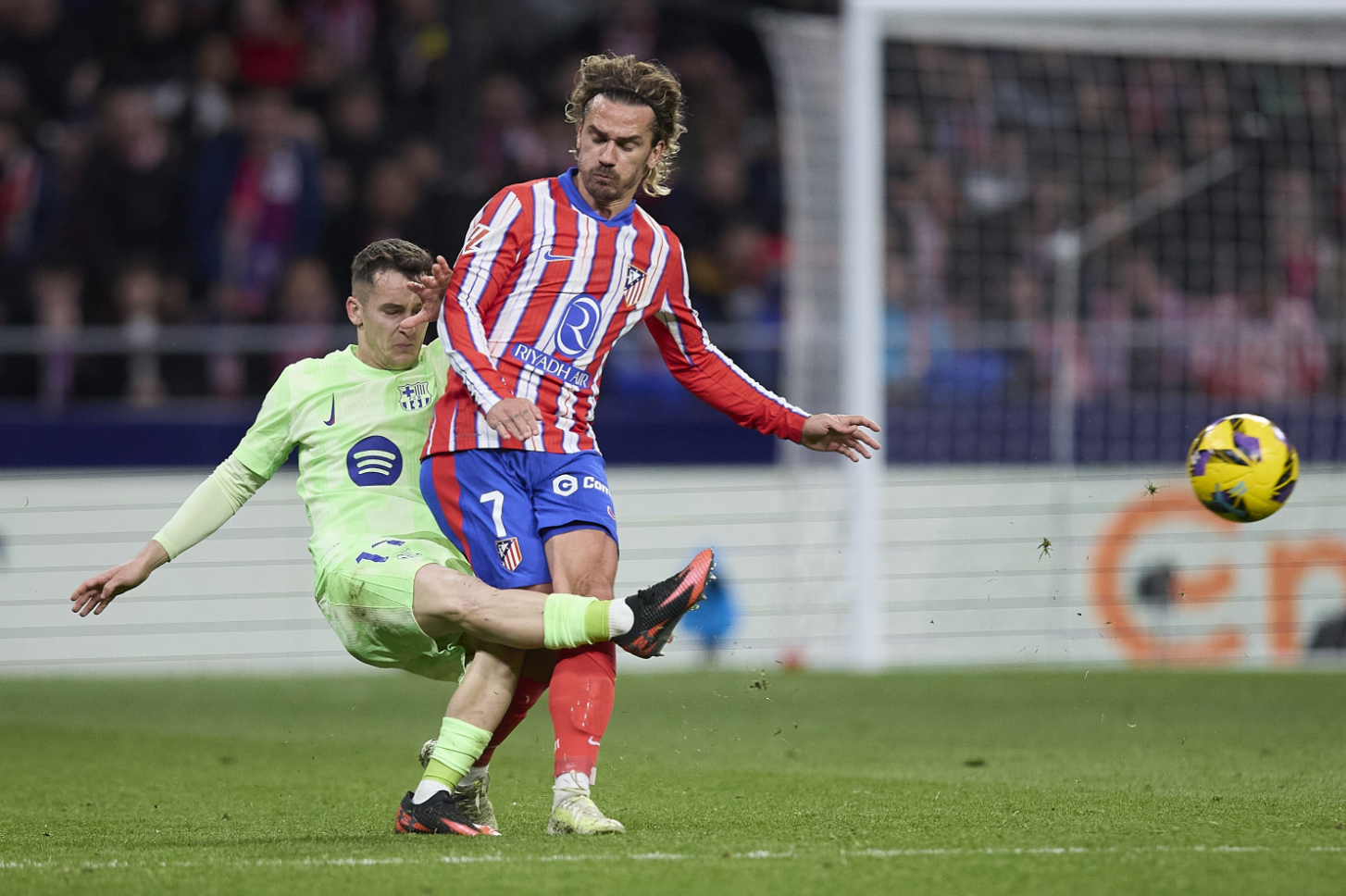 上半场补时阶段,巴萨的噩梦达到顶点——卢克曼投桃报李为阿尔瓦雷斯送上助攻,后者禁区前沿劲射破门,马竞4-0领先结束上半场。下半场巴萨表现稍有起色,库巴西一度在第52分钟抢射破门,但因越位在先进球无效,更糟糕的是加西亚还在第85分钟直接踢翻巴埃纳被红牌罚下,最终巴萨客场0-4惨败而归。
