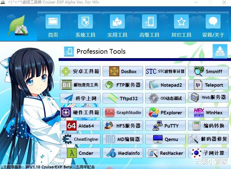 Cruiser EXP Alpha(盘姬工具箱)我第一次打开这个软件的时候,首先是被它的界面吸引住了——满满的二次元萌系风格,主页面那个叫Miss Shizuku的小姐姐设定上是个计算机科学和美术专业的学生,别说还挺符合这个工具箱的气质的。但别被它的外表迷惑了,这家伙内核相当硬核。