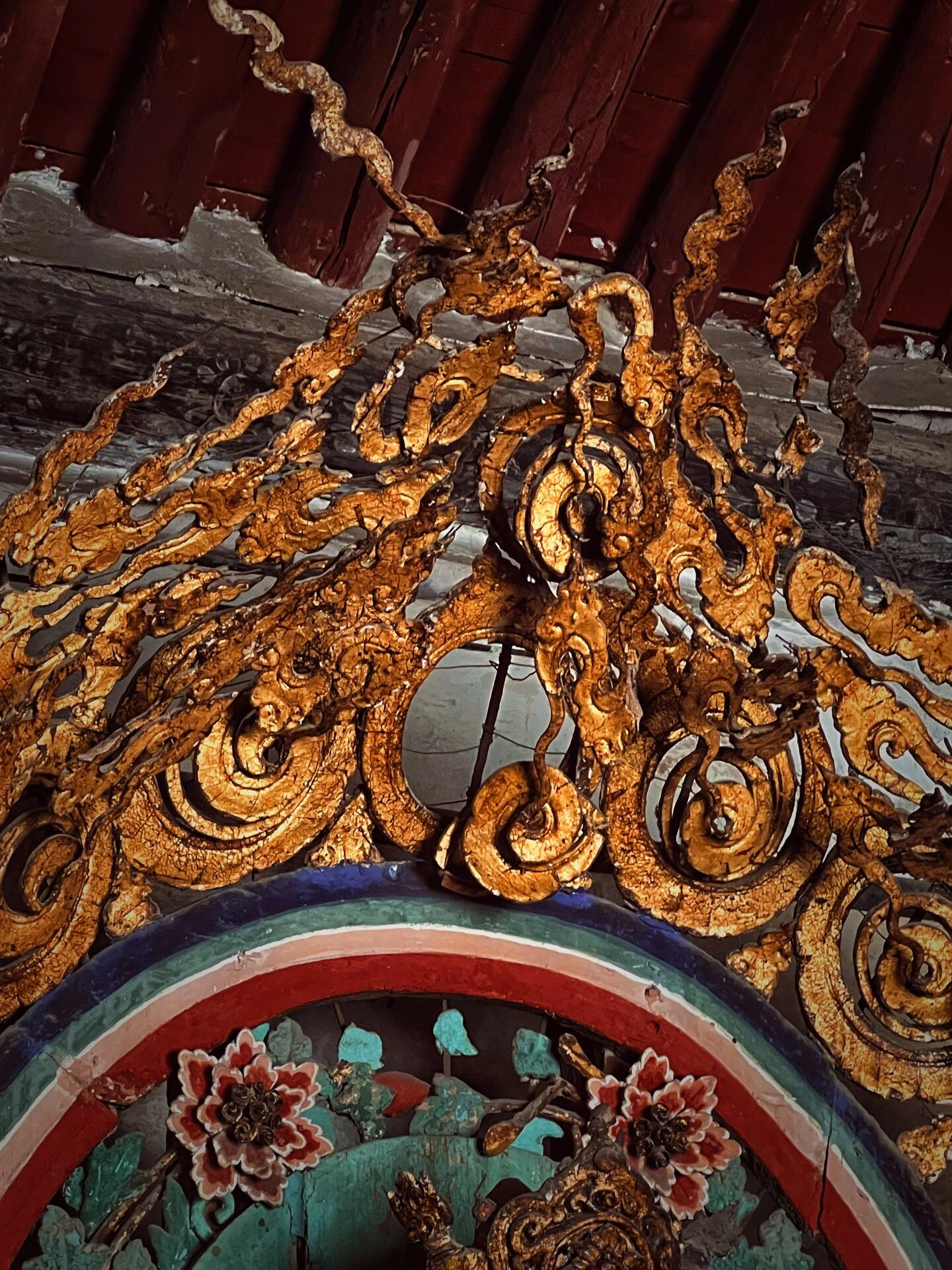穿过万佛殿,镇国寺就像一本徐徐展开的建筑史书,金元明清的时光切片依次铺陈在眼前。天王殿是元代建筑的代表,虽经后世修缮,仍保留着元代建筑特有的粗犷风格。斗拱用材硕大,梁架结构简洁有力,站在殿前,仿佛能听见元代工匠挥斧凿木的声响。地藏殿和三佛殿则是明代建筑的典范,飞檐翘角比前代更加灵动,门窗上的木雕细腻繁复,展现出明代工匠对细节的极致追求。殿内的明代彩塑同样精彩,不同于五代彩塑的古朴大气,这些塑像面容清秀,服饰华丽,衣褶间装饰着精美的花纹,反映出明代审美对细腻与华丽的偏好。