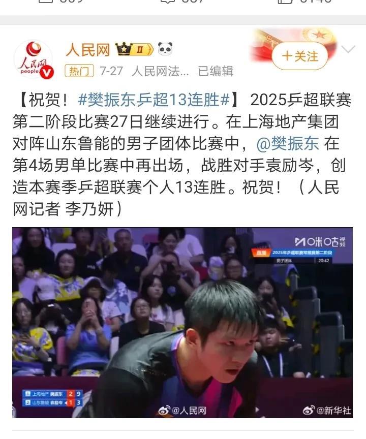 我们一起向未来 18岁的樊振东, 创造了个人27连胜。 十年后, 28岁的樊振东