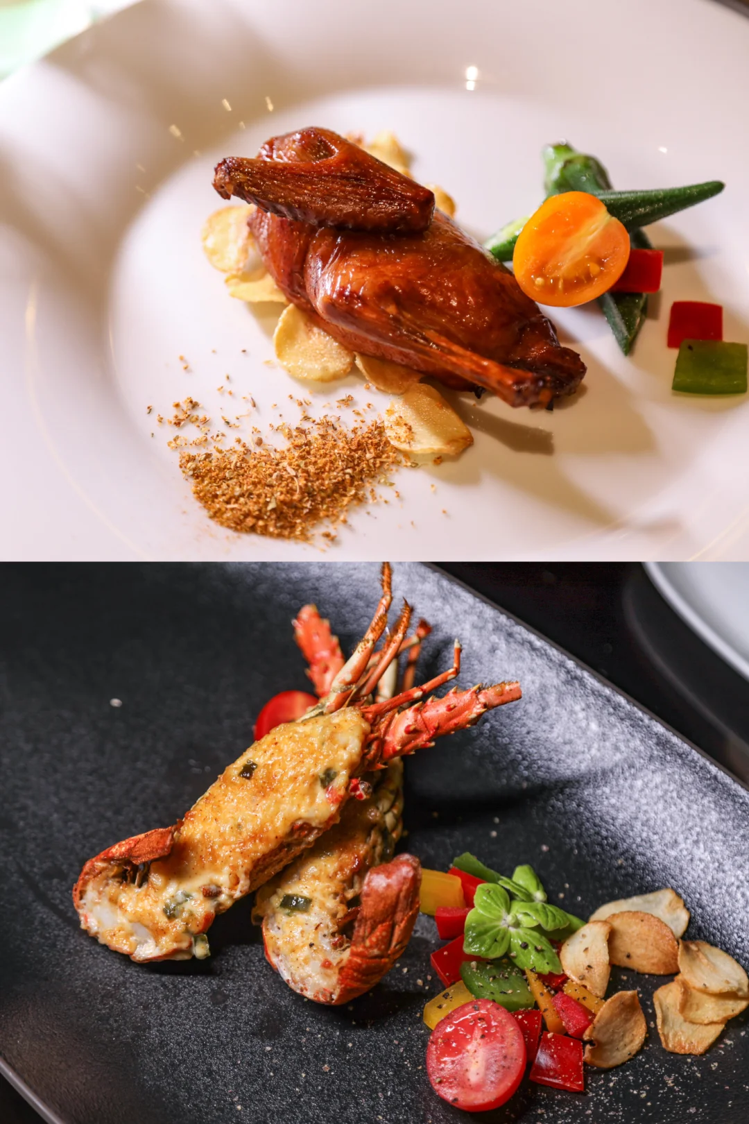 🍖热菜区:香茅烤乳鸽表皮金黄酥脆,咬下去汁水四溢,还有淡淡的香茅味;酥皮佛跳墙,汤汁浓郁,食材丰富,每一口都超满足;明太子薯仔王,土豆泥绵密,搭配明太子,口感层次超丰富。