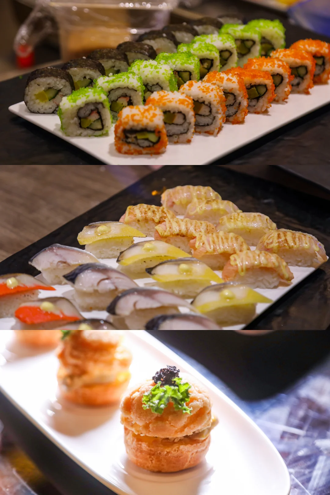 🍣刺身区:三文鱼、金枪鱼、北极贝等刺身厚切,品质超棒,入口即化,爱吃刺身的宝子千万别错过。