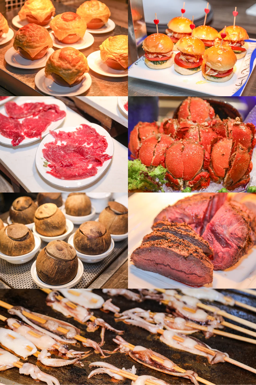 🥘铁板火锅区:可以让厨师现场铁板烧,牛排、羊排、大虾在铁板上滋滋作响,香气扑鼻;不想吃铁板烧,还有小火锅,各种肉类、蔬菜、丸子,自己煮超过瘾。