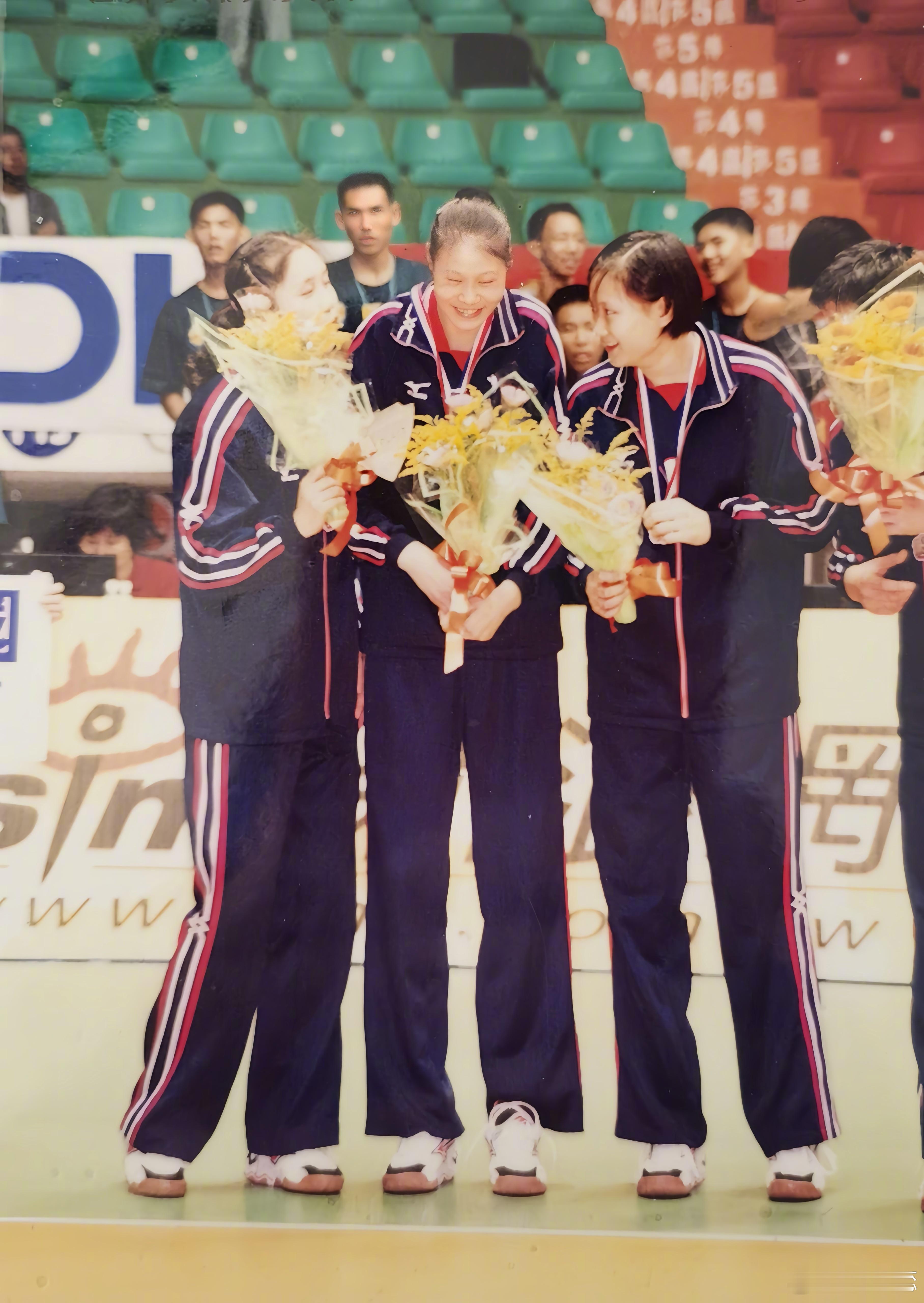图1是当年的南北明星赛的现场。上国家队前我打过主攻与接应,1999年入选国家队后我被胡进指导从接应改成了副攻。这张是上午晕头转向的仅仅练了一堂副攻训练,晚上就硬着头皮去打比赛的照片,那时候我连副攻最基本的快球都不会打啊,想想当时真是没少虐两位二传姐姐呀[允悲][允悲][作揖][作揖]